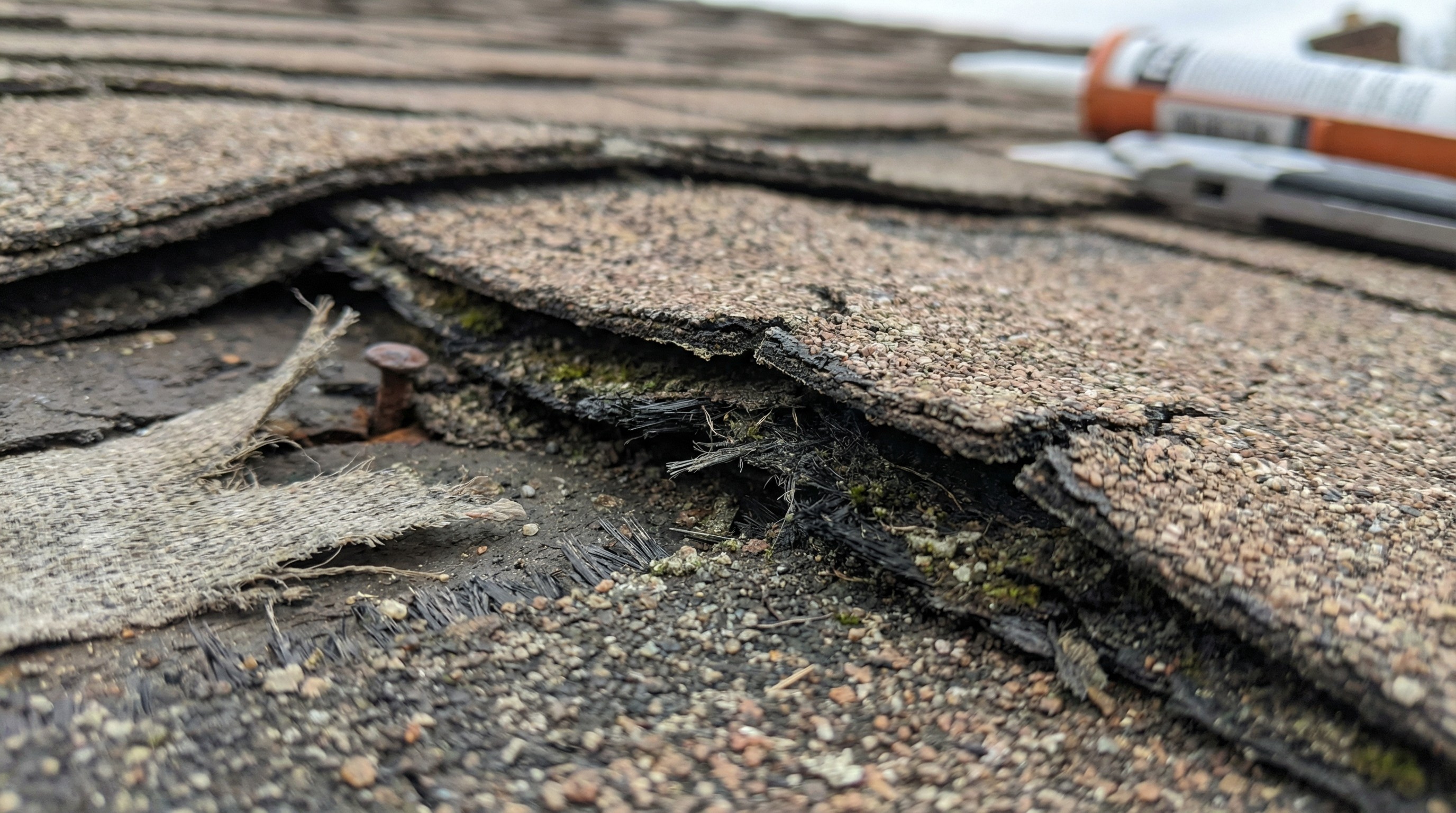 When shingles start curling at the edges or cupping in the middle, they've lost their ability to keep water out. Cracked shingles create direct pathways for moisture. Missing shingles leave the wood underneath completely exposed.
