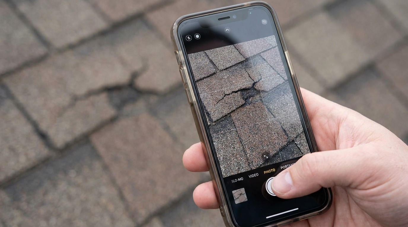 Take clear, dated photos of all visible damage from multiple angles. Capture close-ups of broken shingles, dents, and any water stains inside your home. Photograph the damage from ground level and, if safe, from a ladder to show the full extent. Write down the date the damage occurred and keep records of any emergency repairs you made, like tarping a section to prevent more water from getting in.