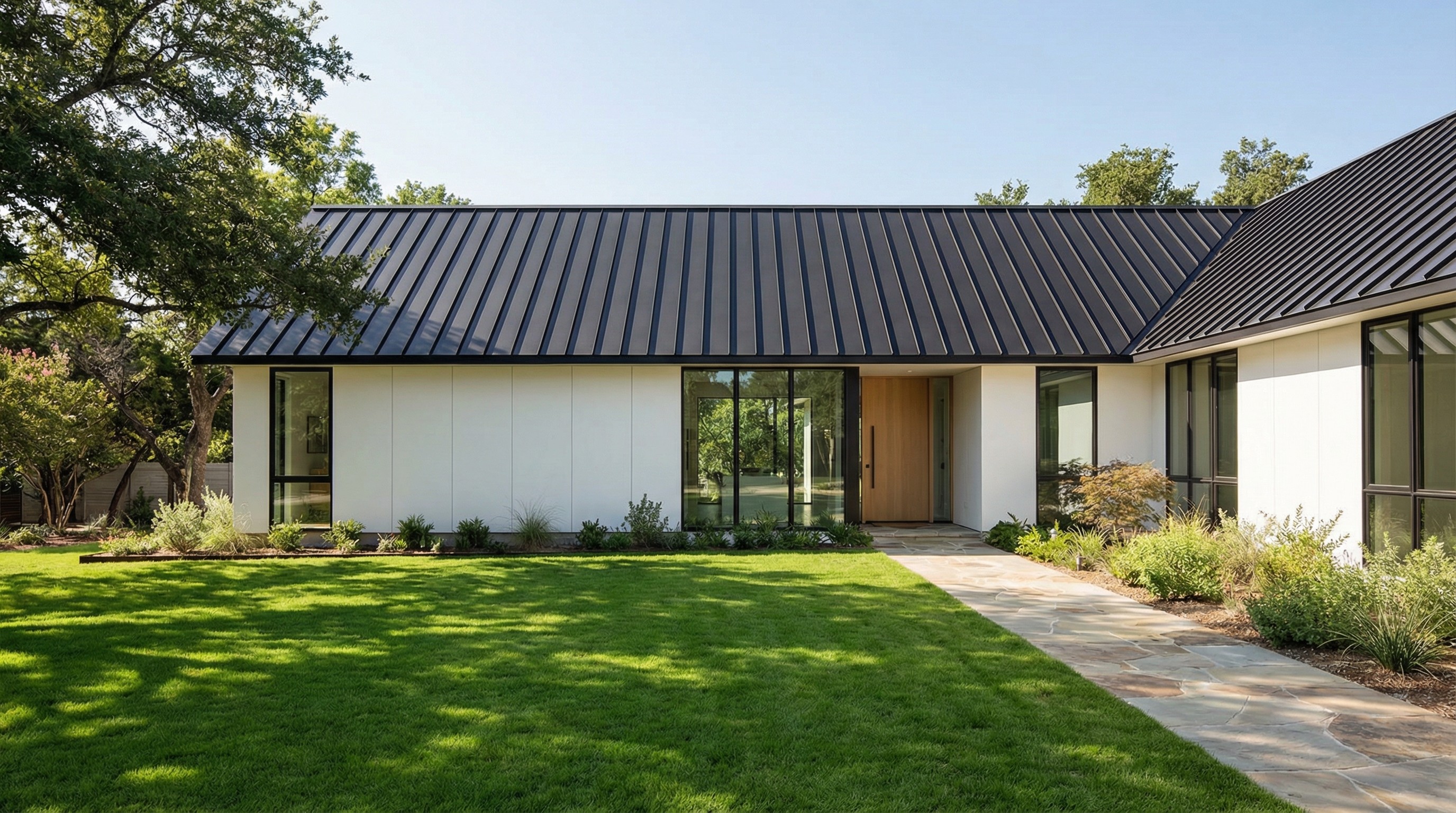 Ribbed panels, sometimes called R-panels or PBR panels, have a profile similar to corrugated but with a different shape. They're often the most affordable metal roofing option and install quickly. While common on agricultural buildings and commercial structures, some homeowners use ribbed panels for budget-conscious residential projects.