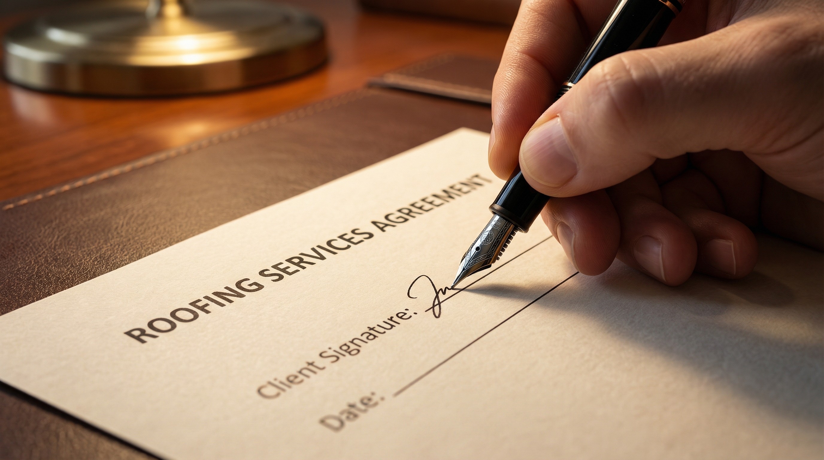 The contract specifies exactly what work will be done and what materials will be used, including brand names and product lines. If you discussed upgraded underlayment or specific flashing during the estimate process, it appears here in writing.