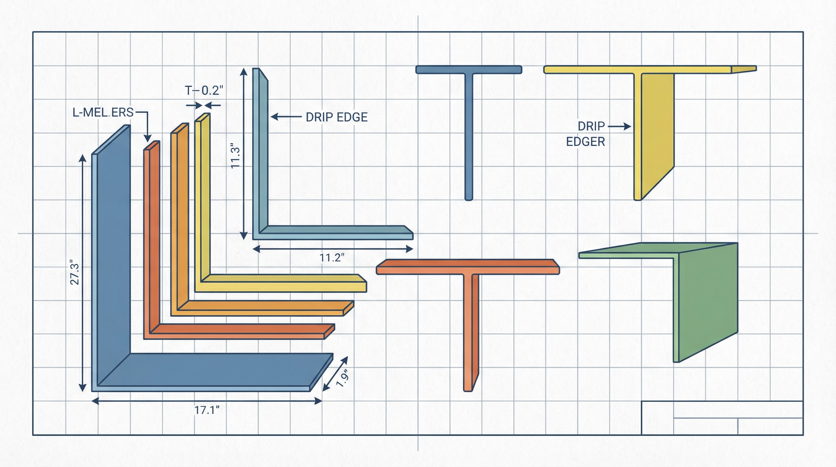 When roofers mention drip edge "profiles," they're talking about the shape of the metal when you look at it from the end. Different profiles serve different purposes, though most residential roofs use Type C or Type D.