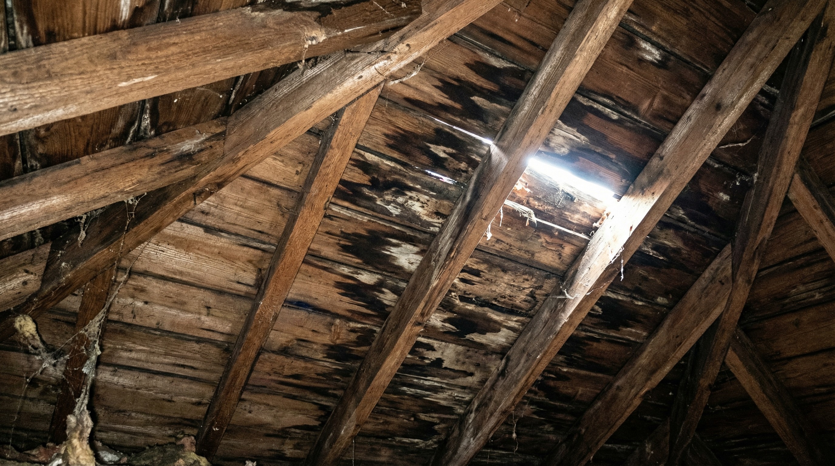 A musty smell in your attic or visible fuzzy growth on the wood means moisture has been trapped long enough for mold to take hold. Beyond the structural concern, mold can also create health issues for your household.