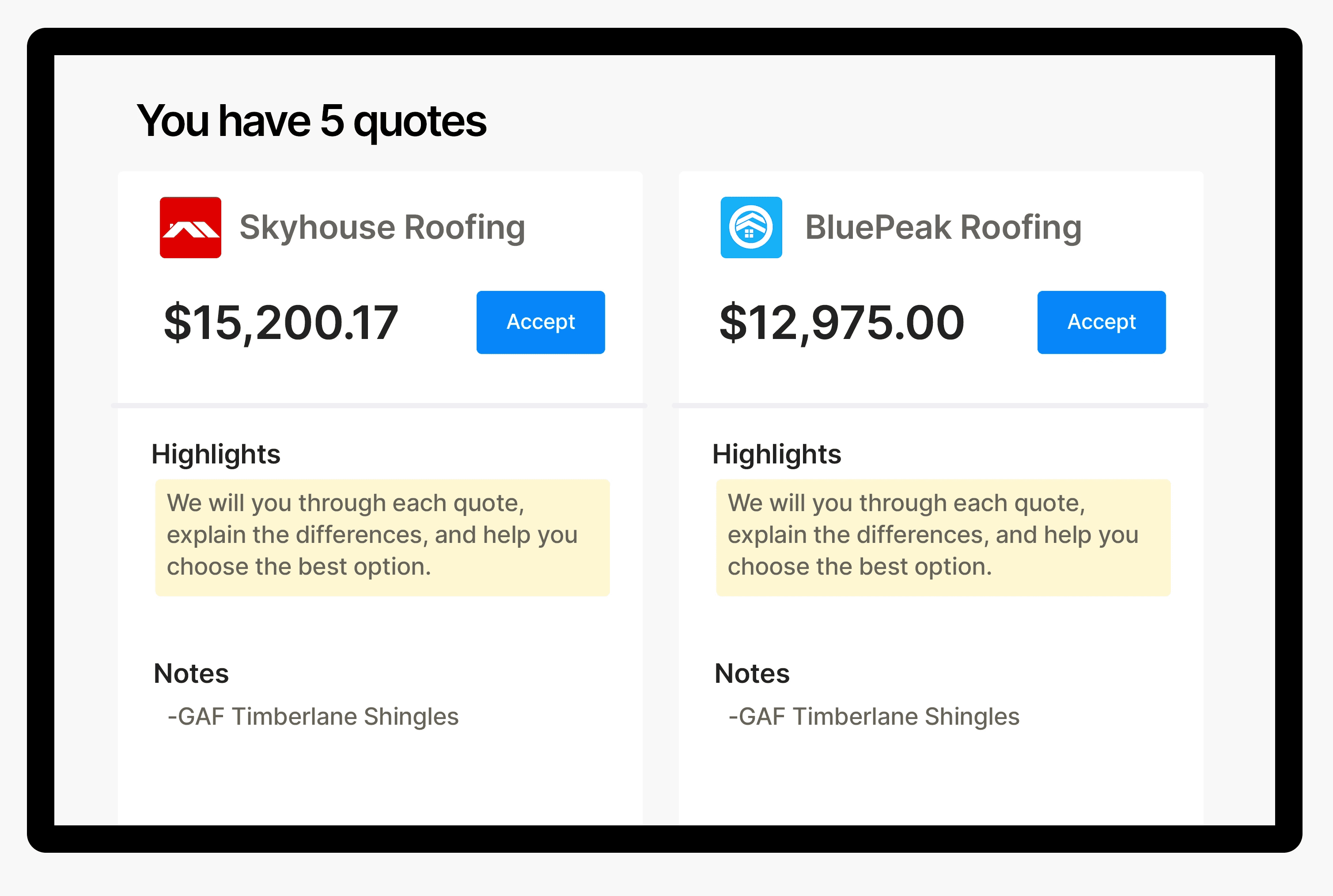 Compare competing quotes from vetted roofers near you.